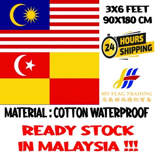 (Cotton Waterproof) 3x6 Bendera Malaysia and Selangor Flag 2pcs Combo *READY STOCK*